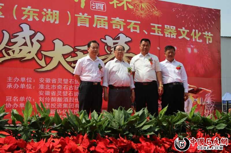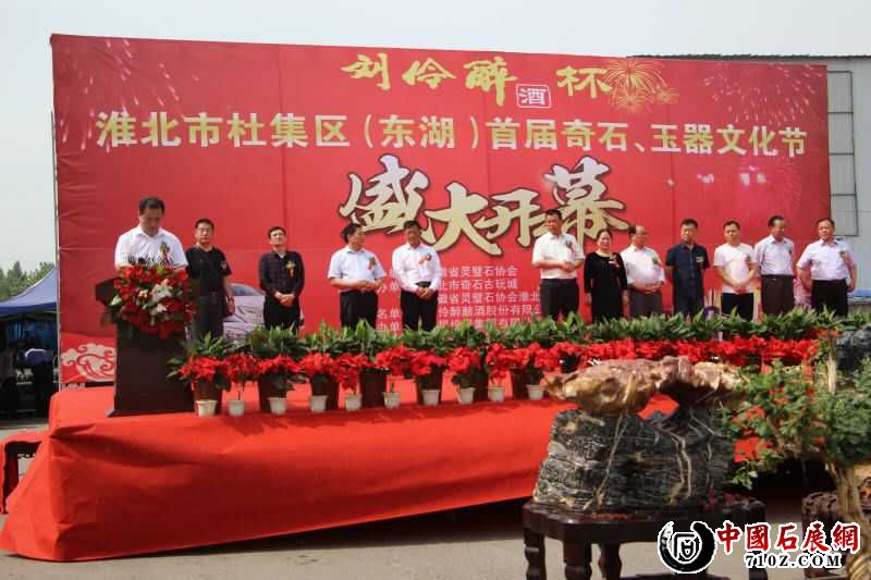 【安徽省灵璧石协会】快讯 2016年5月12日上午, 阳光明媚, 百花盛开, “刘伶醉”杯2016淮北市杜集区(东湖)首届奇石、玉器文化节在淮北市杜集区东湖奇石古玩城隆重开幕! 安徽省灵璧石协会会长黄国强, 副会长李松、马国利、杨小兰, 美星集团董事长胡海, 淮北市杜集区商务局局长赵德矩, 杜集区工商联主席刘峰, 宿州市书画研究院院长李艺隽, 宿州市硬笔书法协会主席李文凯及社会各界朋友一千多人参加了开幕式。