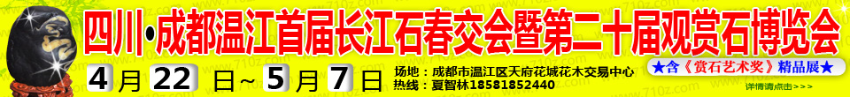 成都温江是中国西南著名的花都,座落于温江的天府花城,是集花木、奇石、崖柏、古玩等一体的综合性市场,曾成功举办中国第六届花博会、第十九届中国兰博会和观赏石博览会,赢得了各界人士认可,市场观赏石商家,主营中高端长江石,在石界具有一定的影响力。西藏的藏瓷、藏玉交流交易中心,目前已组团入驻天府花城。石界新贵石种贵州乌蒙磬石,也将组团参加本次精品展。